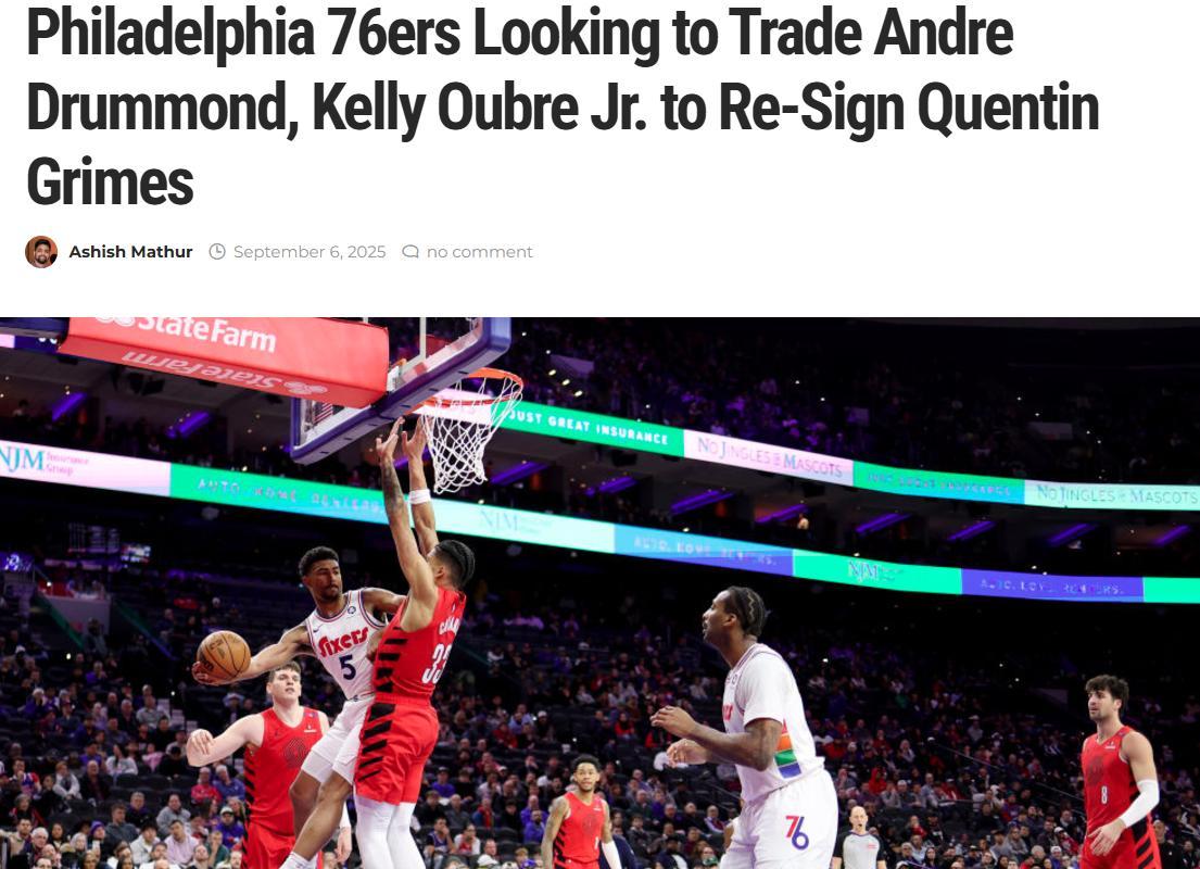 根据美记Jake Fischer报道,76人队可能在训练营开始之前交易掉德拉蒙德乌布雷中的一位,或者两人一同被交易。